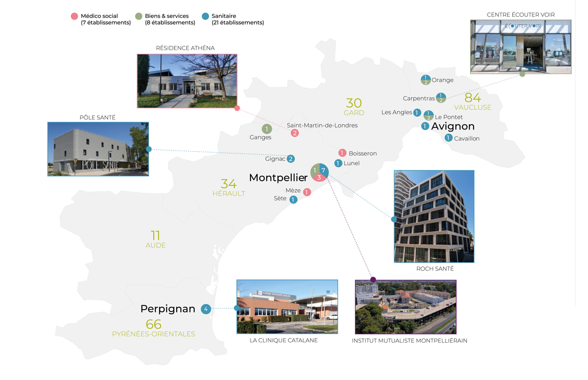 AÉSIO Santé Méditerranée, membre du groupe AÉSIO Santé, propose, à travers 36 établissements, une offre de soins et de services, adaptée aux habitants du Gard, de l’Hérault, des Pyrénées-Orientales et du Vaucluse (enfants, jeunes, familles, personnes âgées, personnes en situation de handicap).